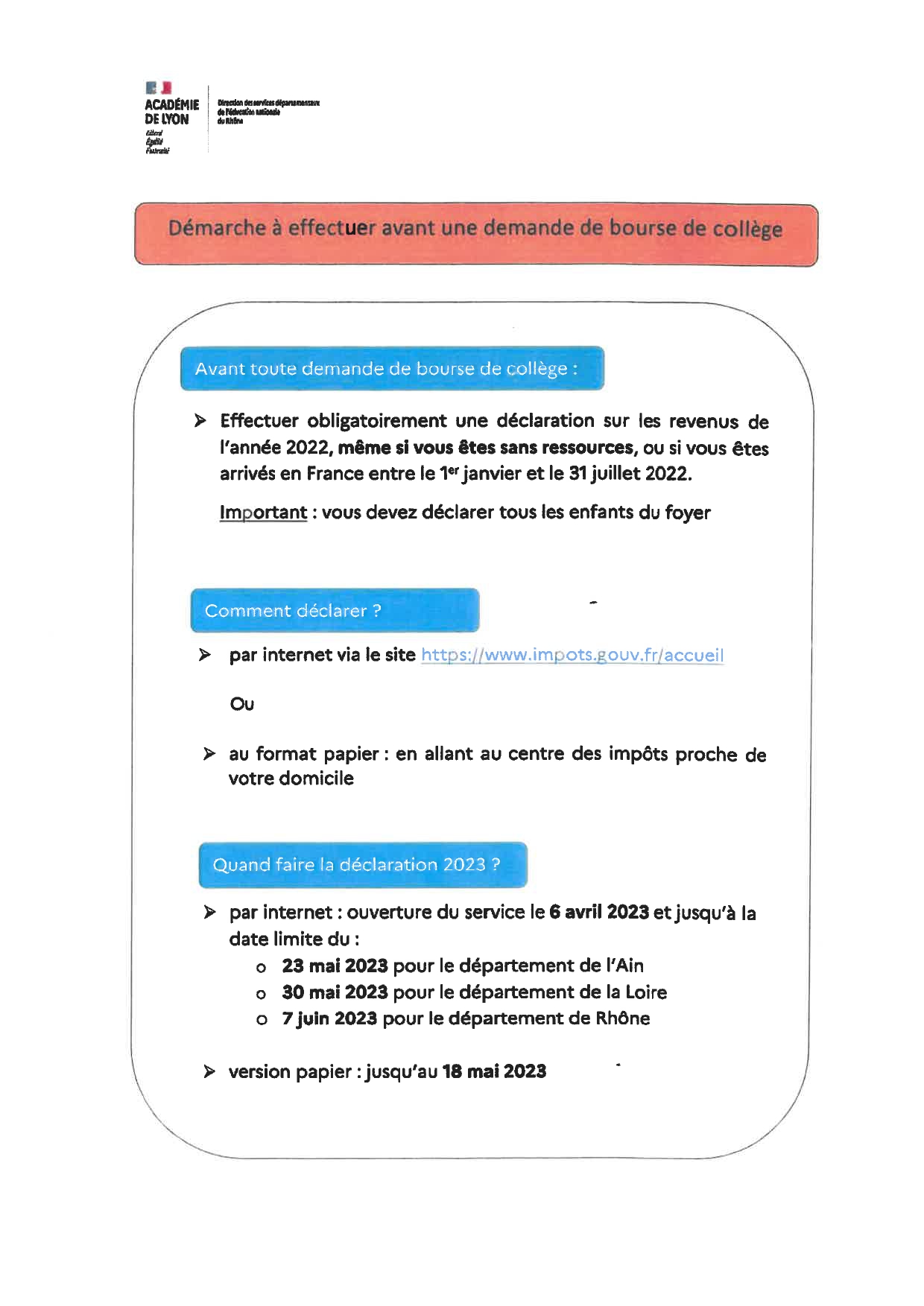 Procédures bourses collège 2023